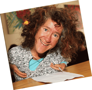 Hier sehen Sie meine Lebensgefährtin. Sie heißt Angeli und sieht etwas anders aus als andere Menschen. Diese "Behinderung" ist weder für sie noch für mich ein